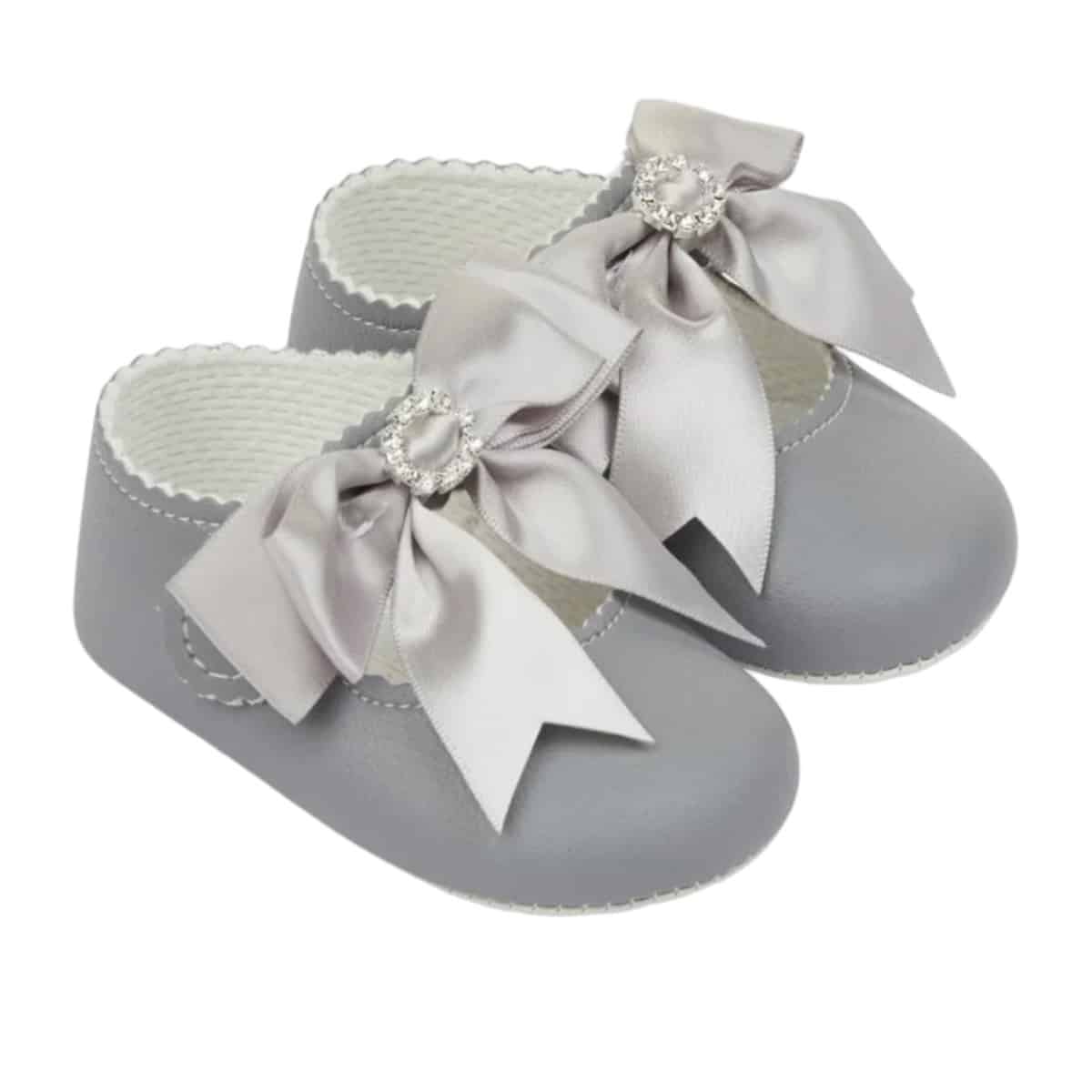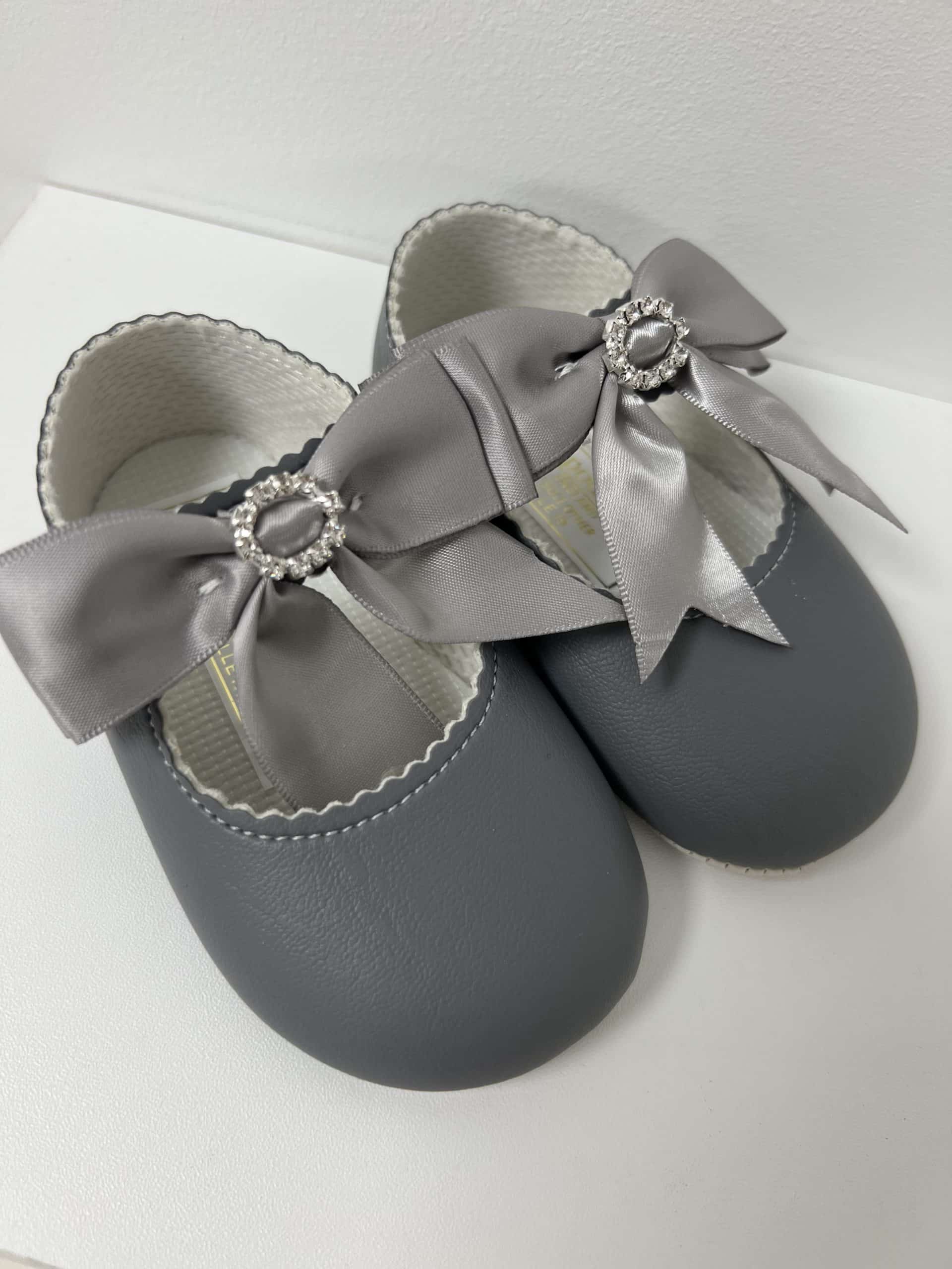 Baypods Baby Girls Grey Diamante Bow Pre-Walker Shoes