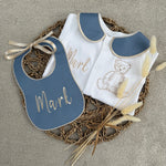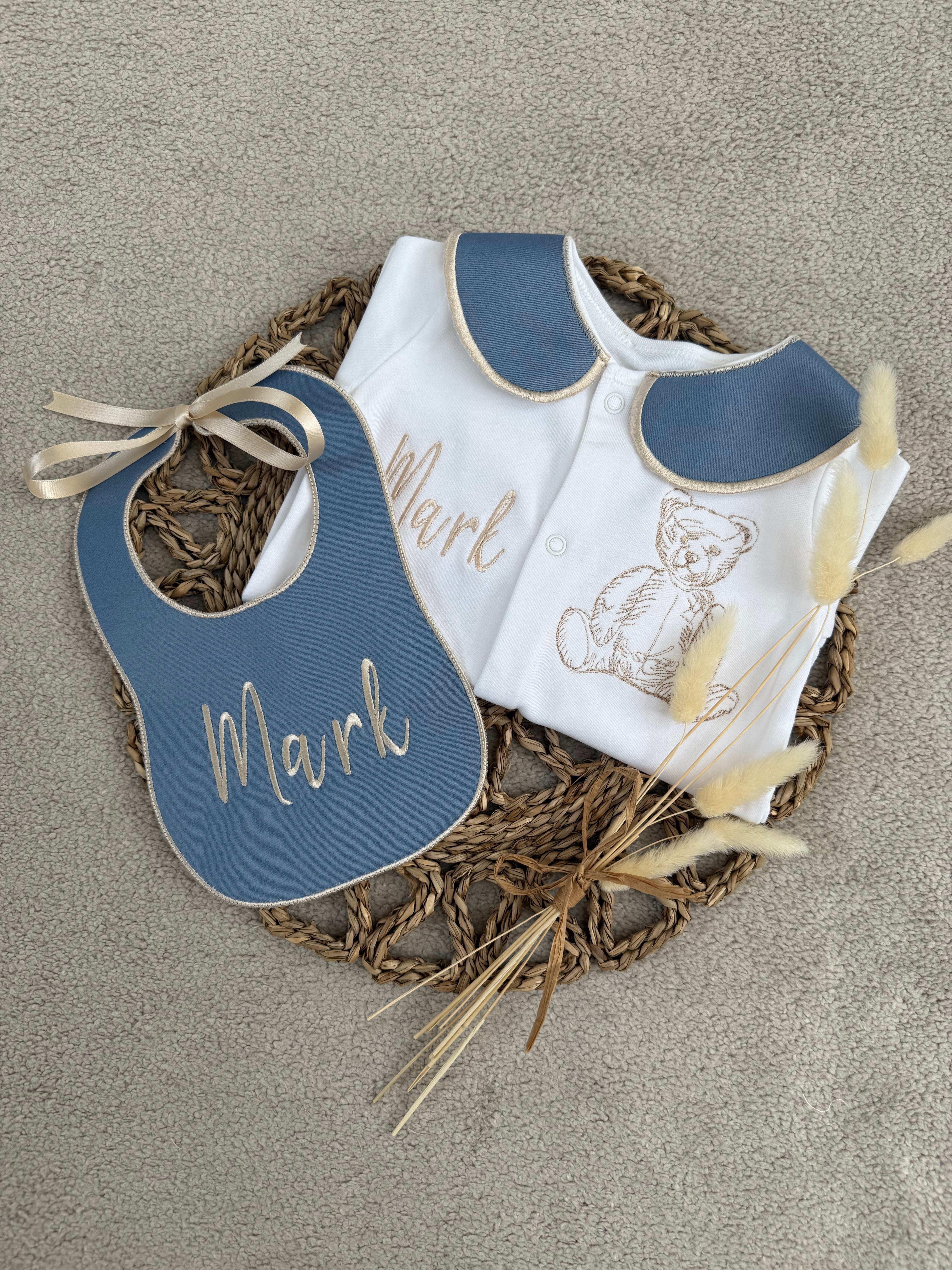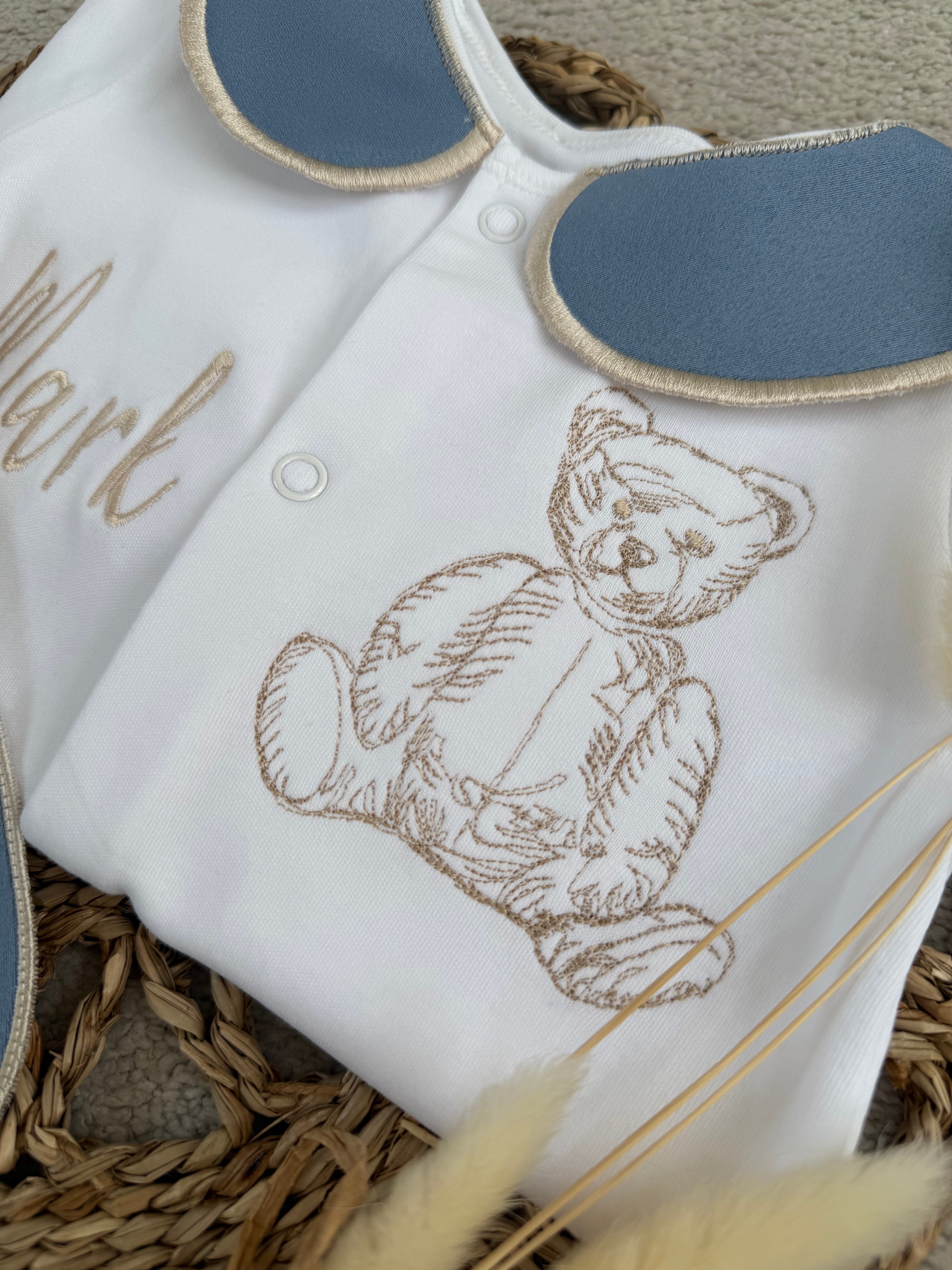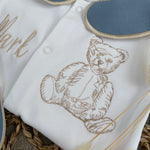 Boys Blue Bear Handmade Sleepsuit And Bib