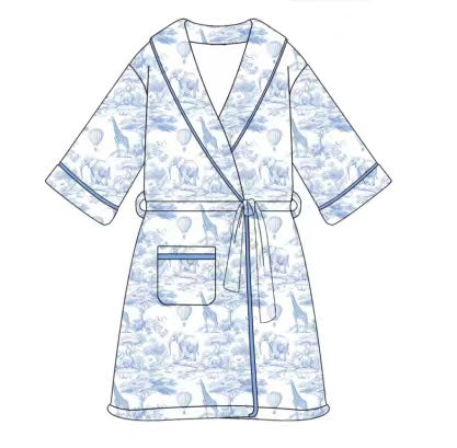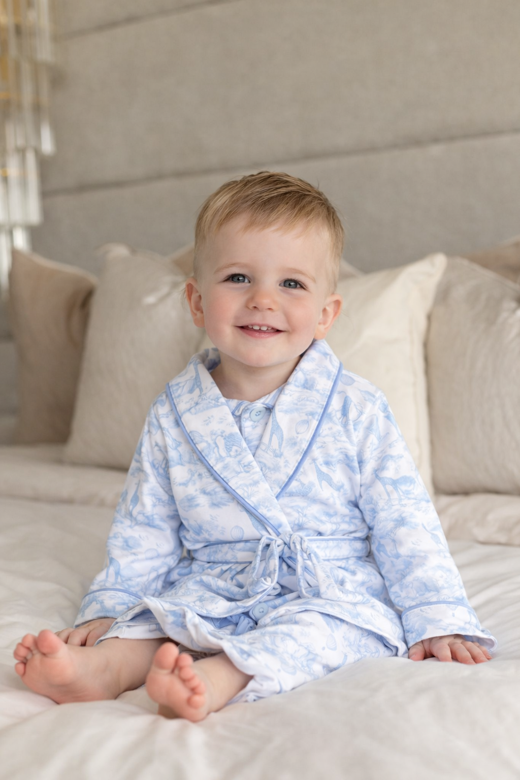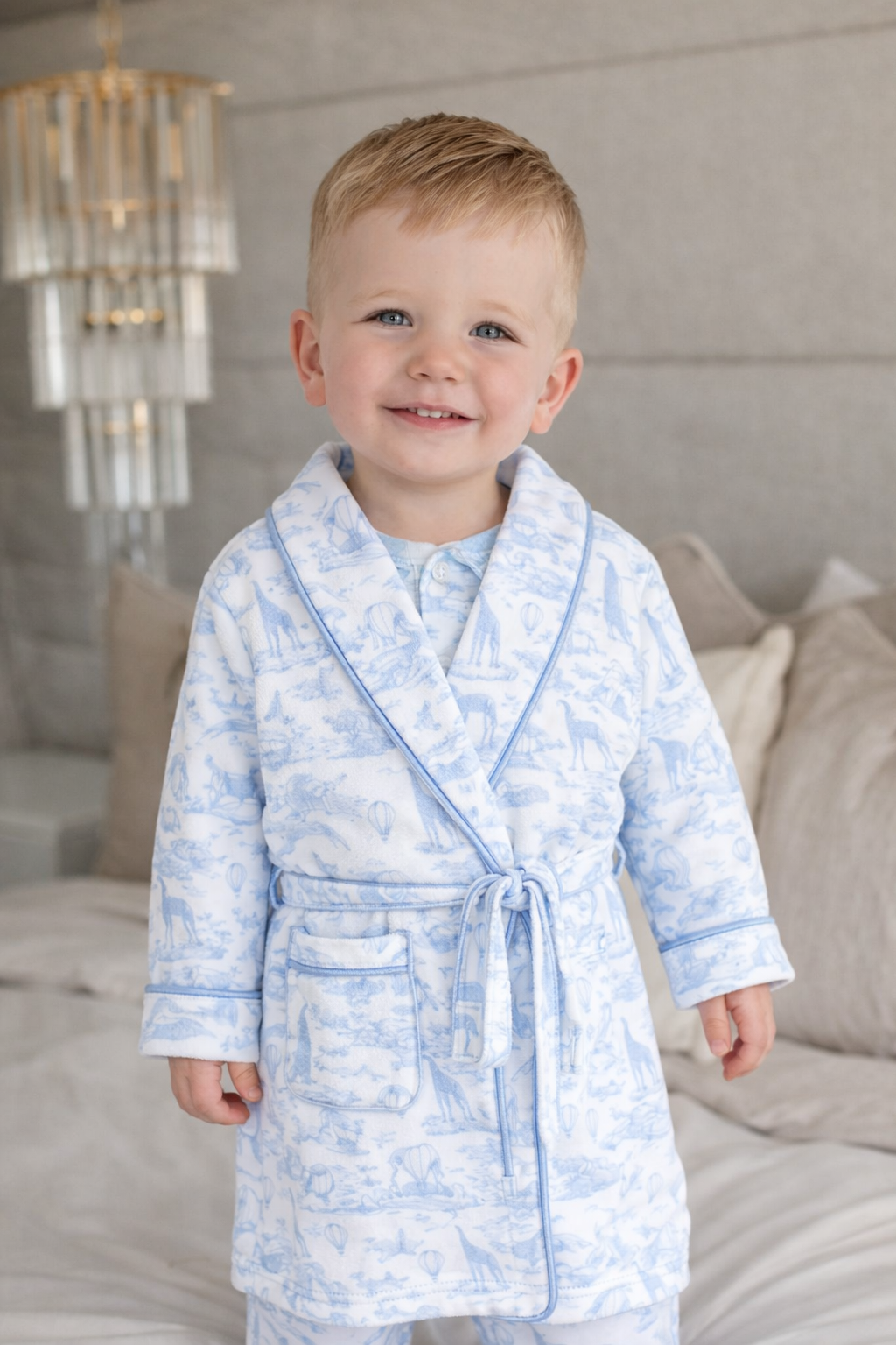 PRE ORDER Boys Blue Safari Toile Summer Dressing Gown – Lightweight Cotton Baby & Toddler Robe