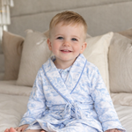 Wrap your little one in effortless comfort with our luxury boys blue toile summer dressing gown, designed for those slow, cosy mornings and warm evenings at home. Crafted from a soft, breathable cotton blend, this lightweight robe is perfect for keeping your baby or toddler comfortable without overheating.
