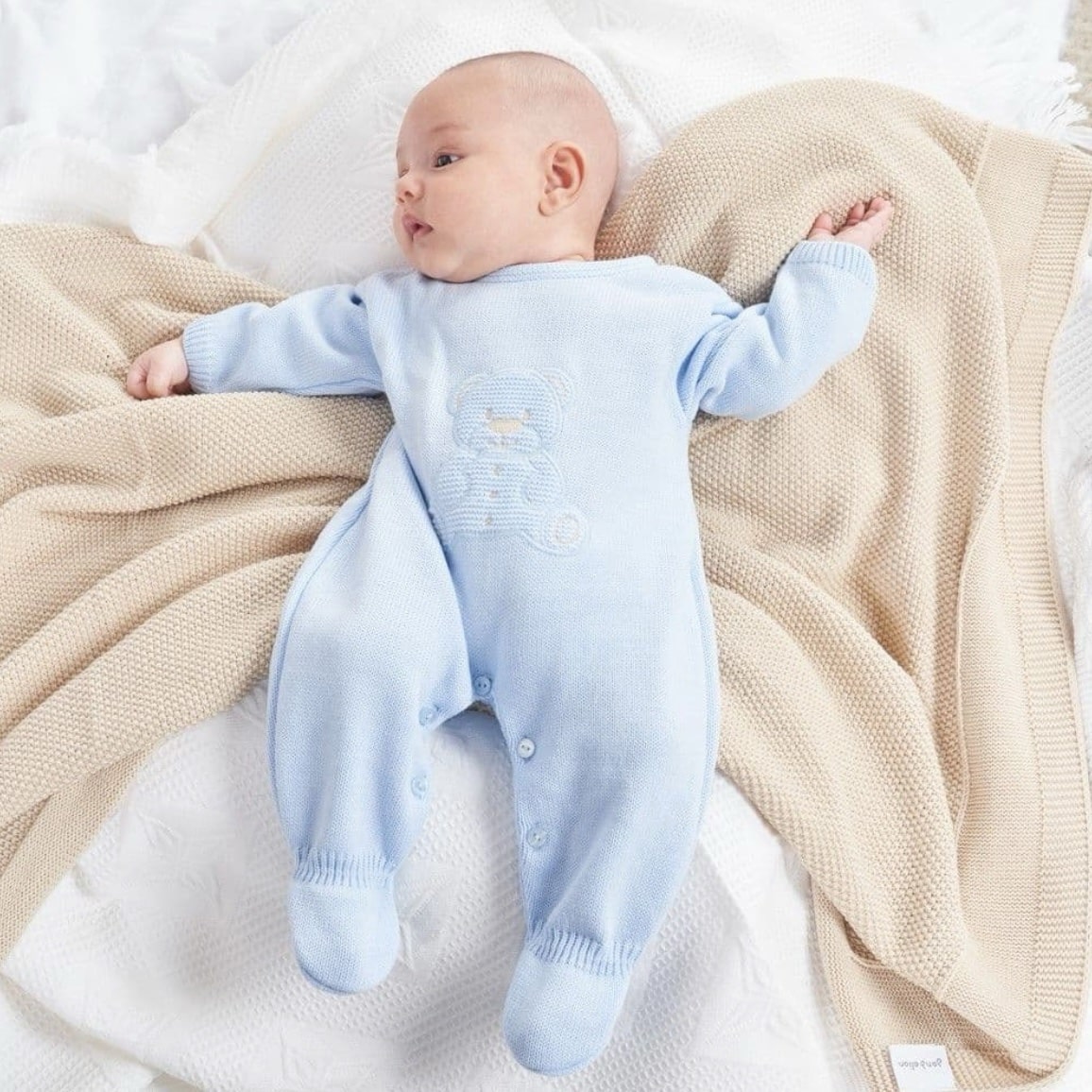 Dandelion Teddy Bear Knitted Onesie - Blue Teddy