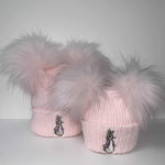 A beautiful pom hat embroidered with our famous Flopsy Bunny embroidery.