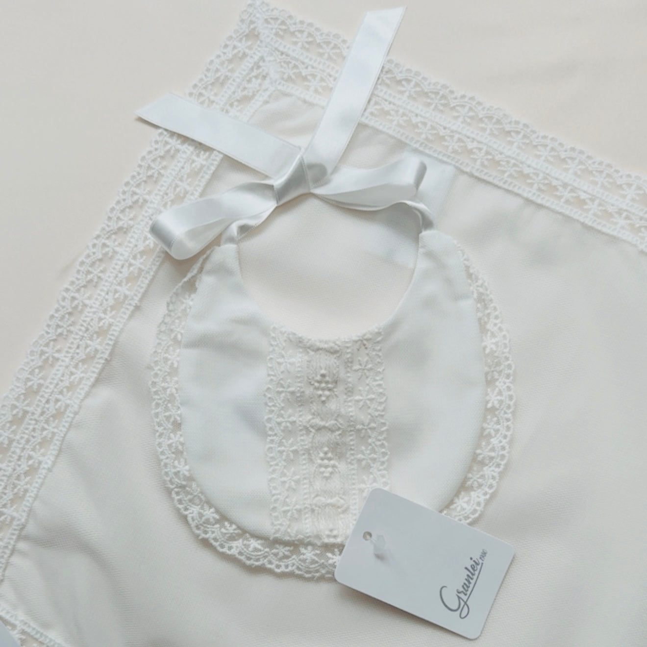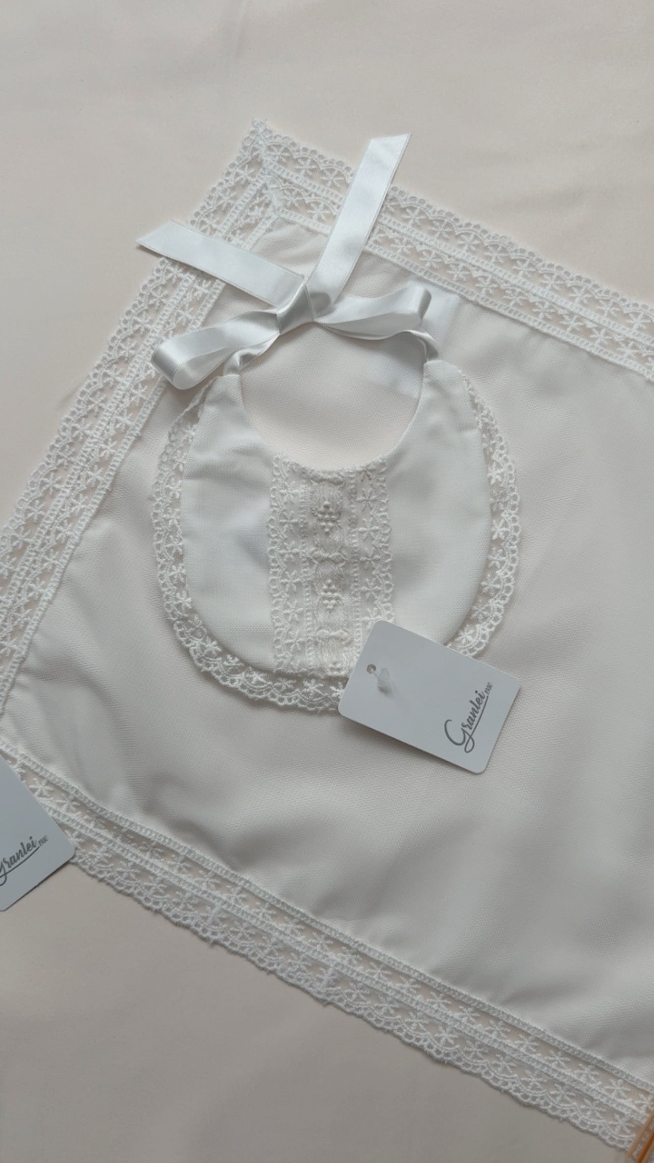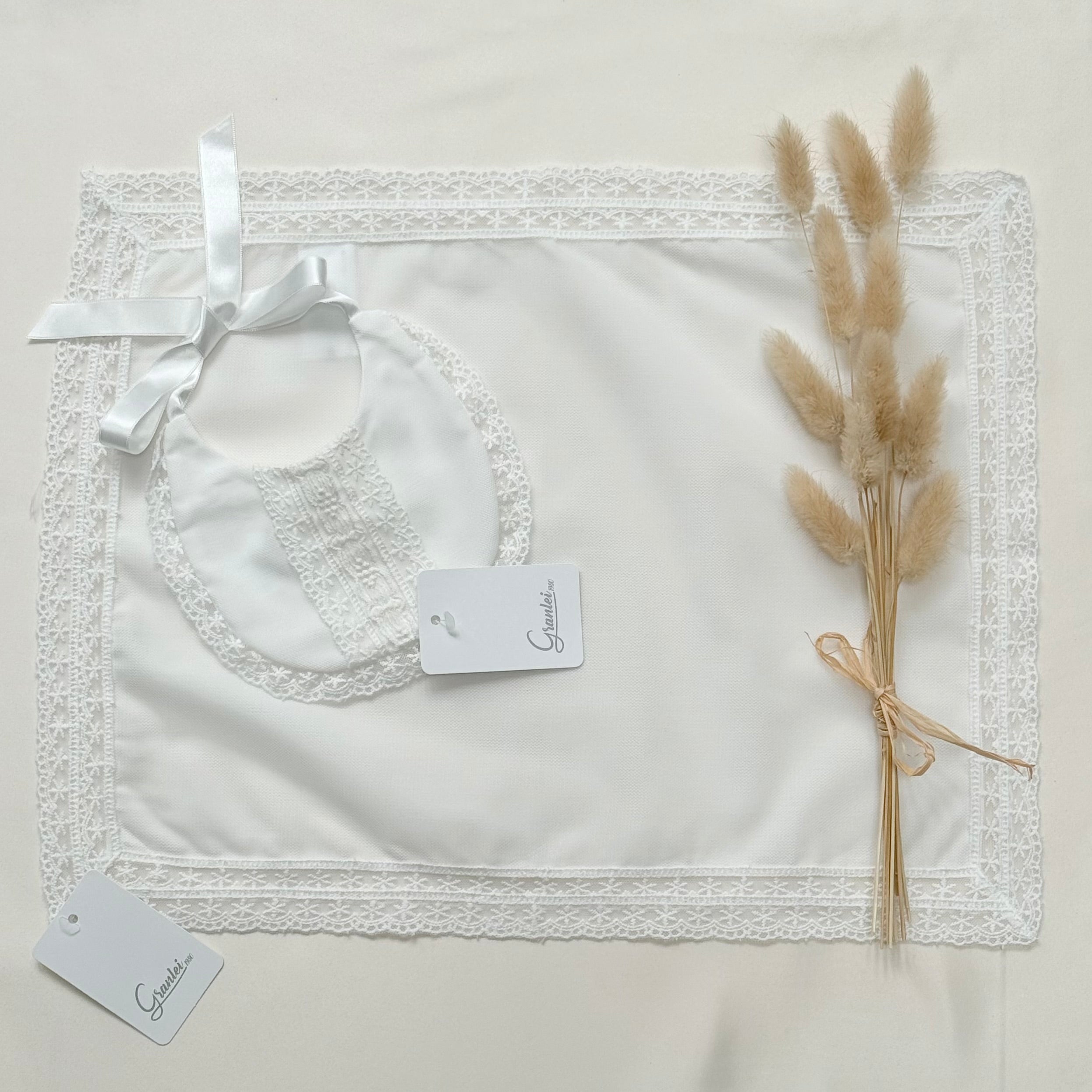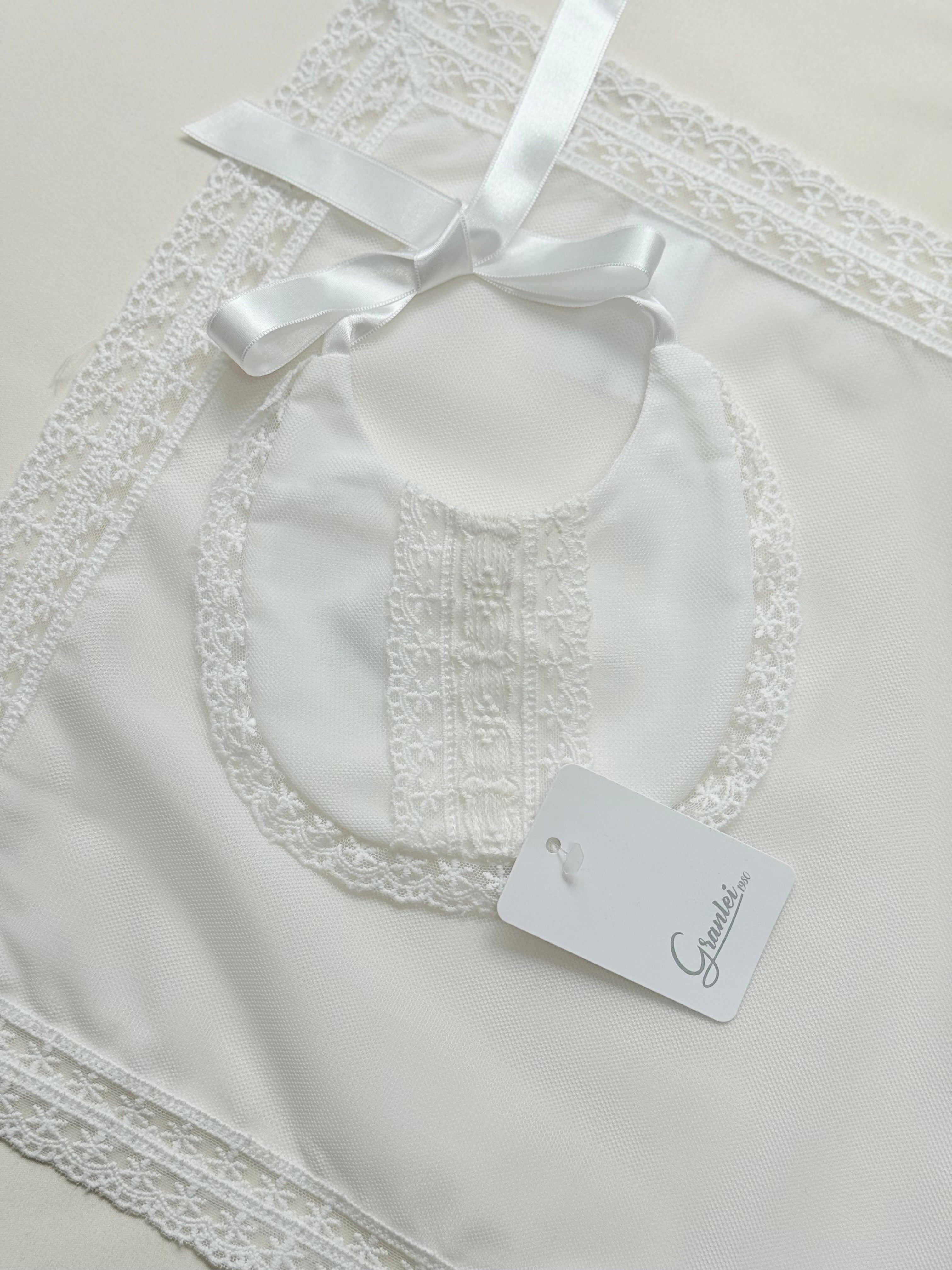 - Spanish baby bib and muslin set,Granlei baby bib and muslin,Luxury baby bib set,Traditional Spanish baby gifts,Lace baby bib and muslin,Ivory baby muslin blanket,Christening baby bib set,Newborn bib and muslin set,Spanish baby clothing accessories,Elegant baby feeding bib,Baby shower luxury gift set,Handmade style baby muslin,Baby keepsake bib,Classic baby bib with lace,Baby christening accessories