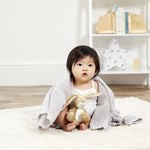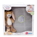 Give gift buyers the winning combination of classic characters, quality products and beautiful presentation with the Guess How Much I Love You Toy and Blanket Set. Featuring the Little Nutbrown Hare character from the much-loved picture book Guess How Much I Love You, this high quality set will appeal to parents, gift buyers and baby alike. The set includes a plush Little Nutbrown Hare toy and a 100% cotton, 60cm x 60cm, machine washable, baby soft blanket, both presented in a beautifully illustrated, window gift box with a ribbon handle. The products are safe from birth so this set makes an ideal newborn or Christening gift or a beautiful baby shower present.