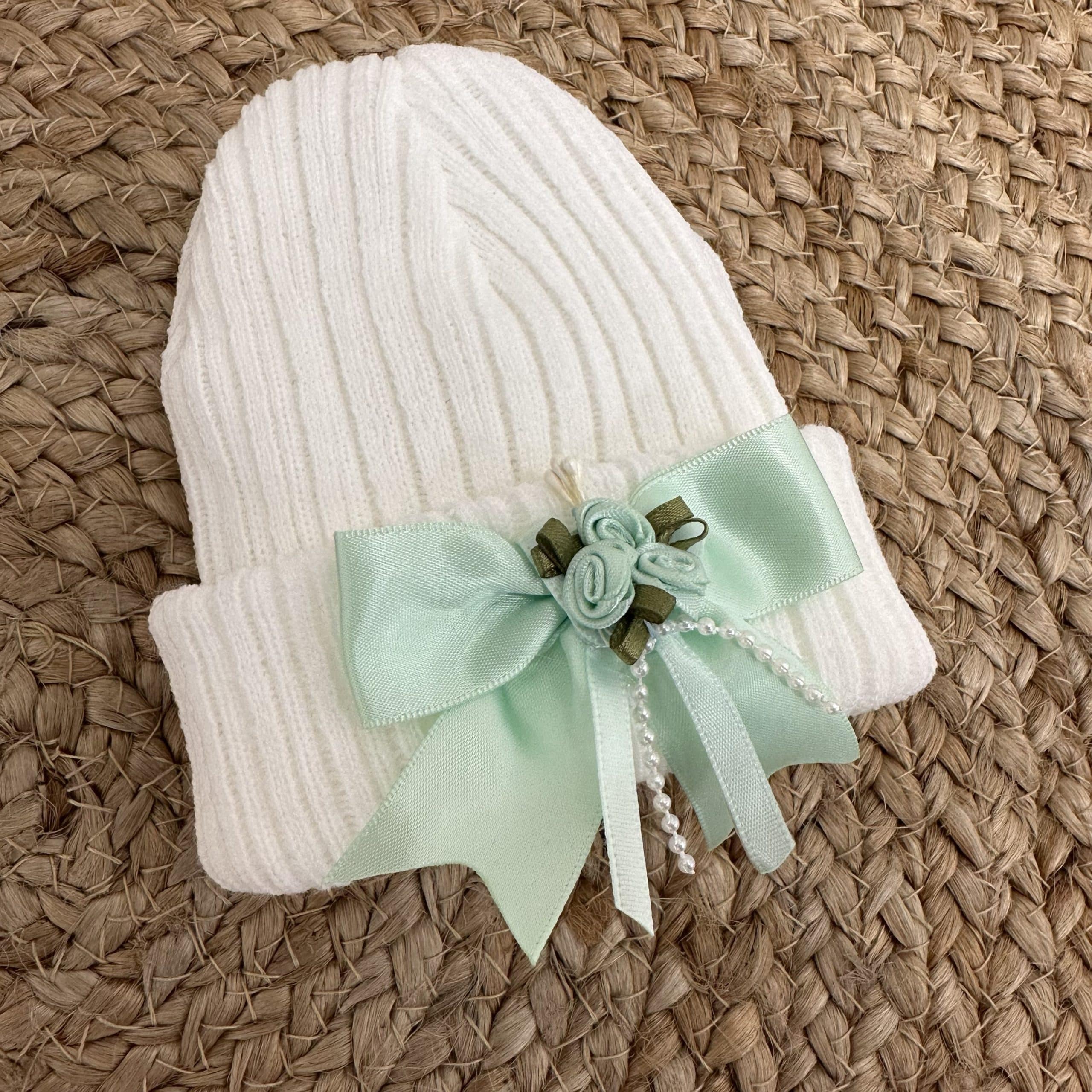 Perfect Little Thing Baby Girls Bow Wool Hat - Green