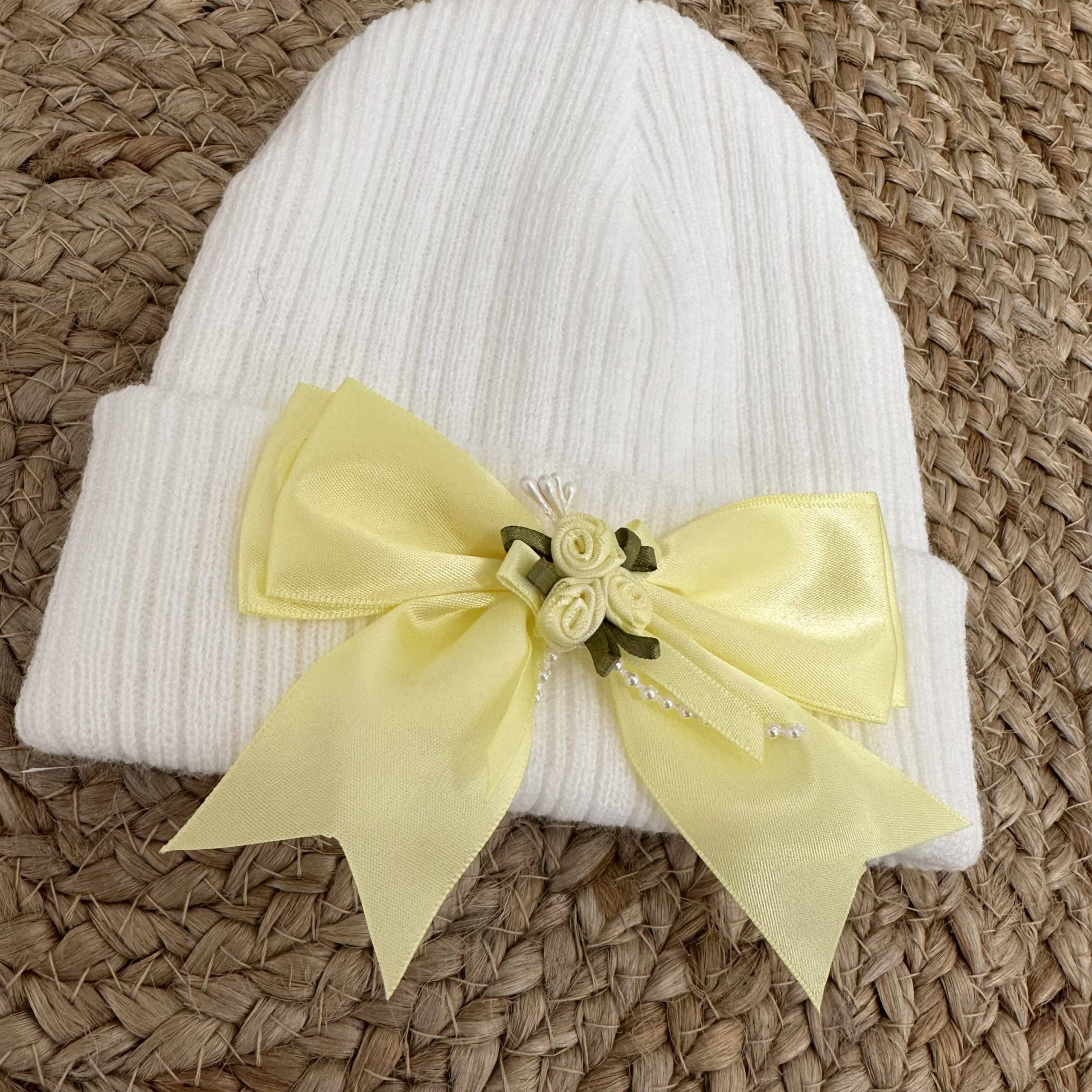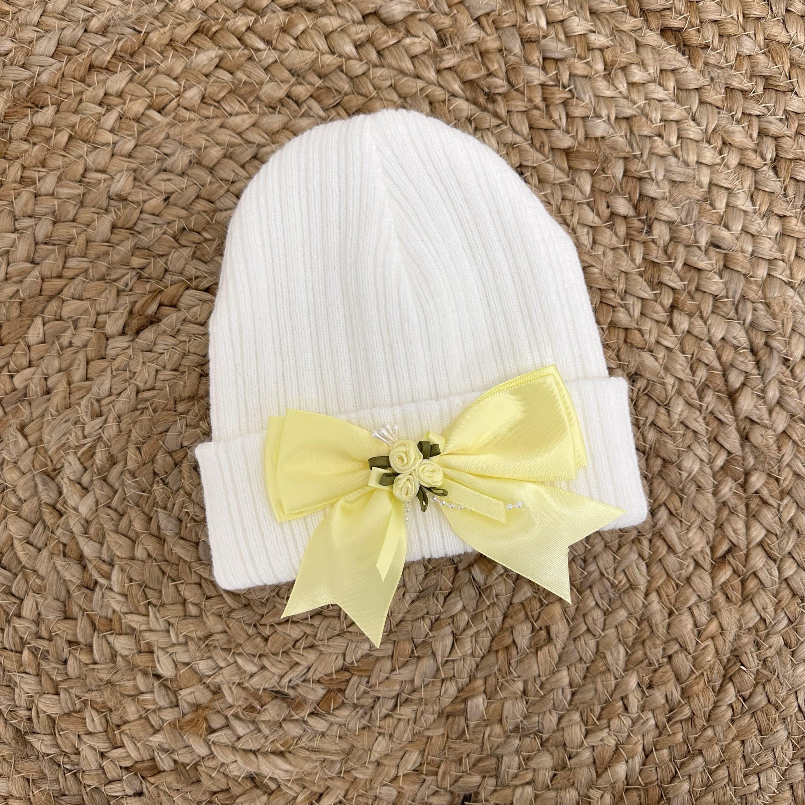 Perfect Little Thing Baby Girls Bow Wool Hat - Lemon