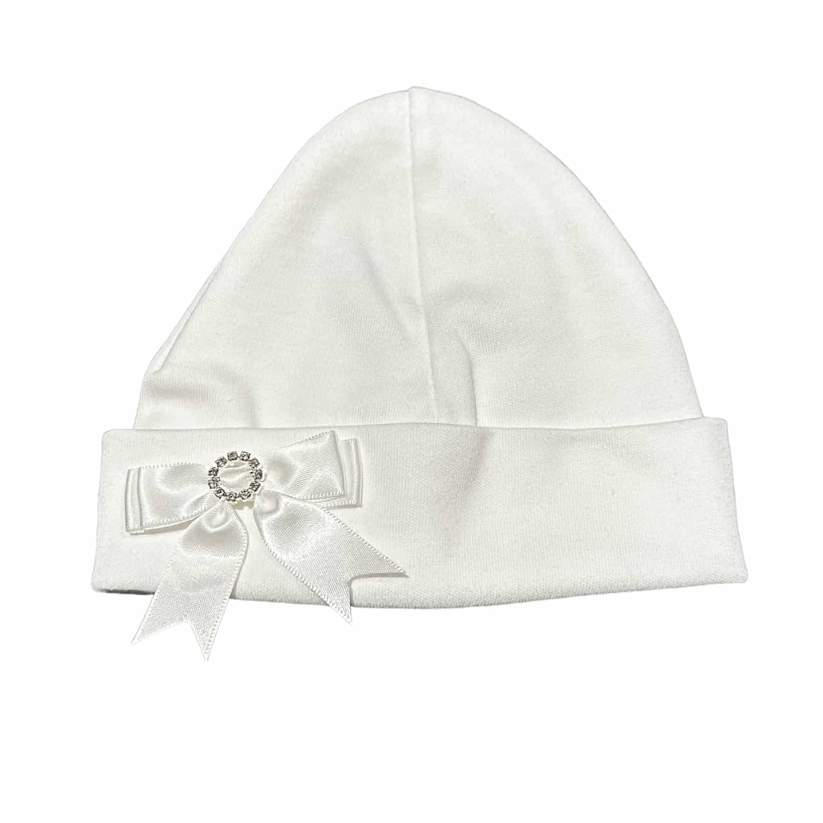 Perfect Little Thing Baby White Beanie Hat With White Diamond Bow
