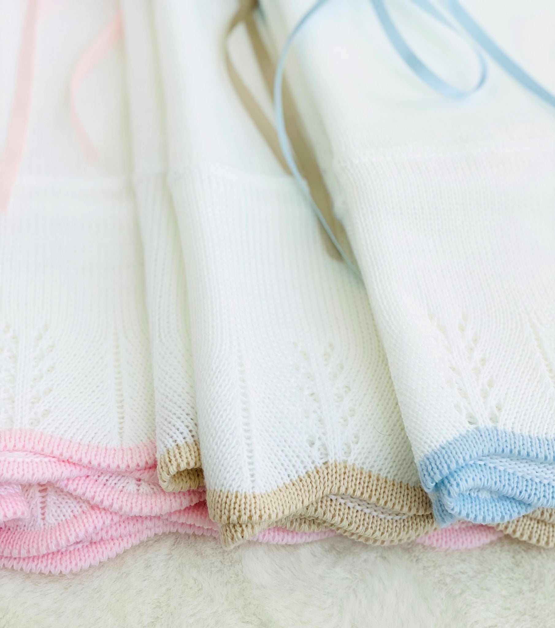 Perfect Little Thing Baby's First Shawl With Baby Pink Trim