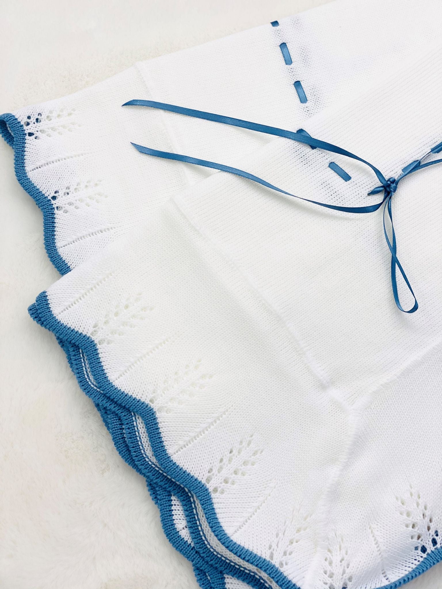 Perfect Little Thing Baby's First Shawl With Dark Blue Trim