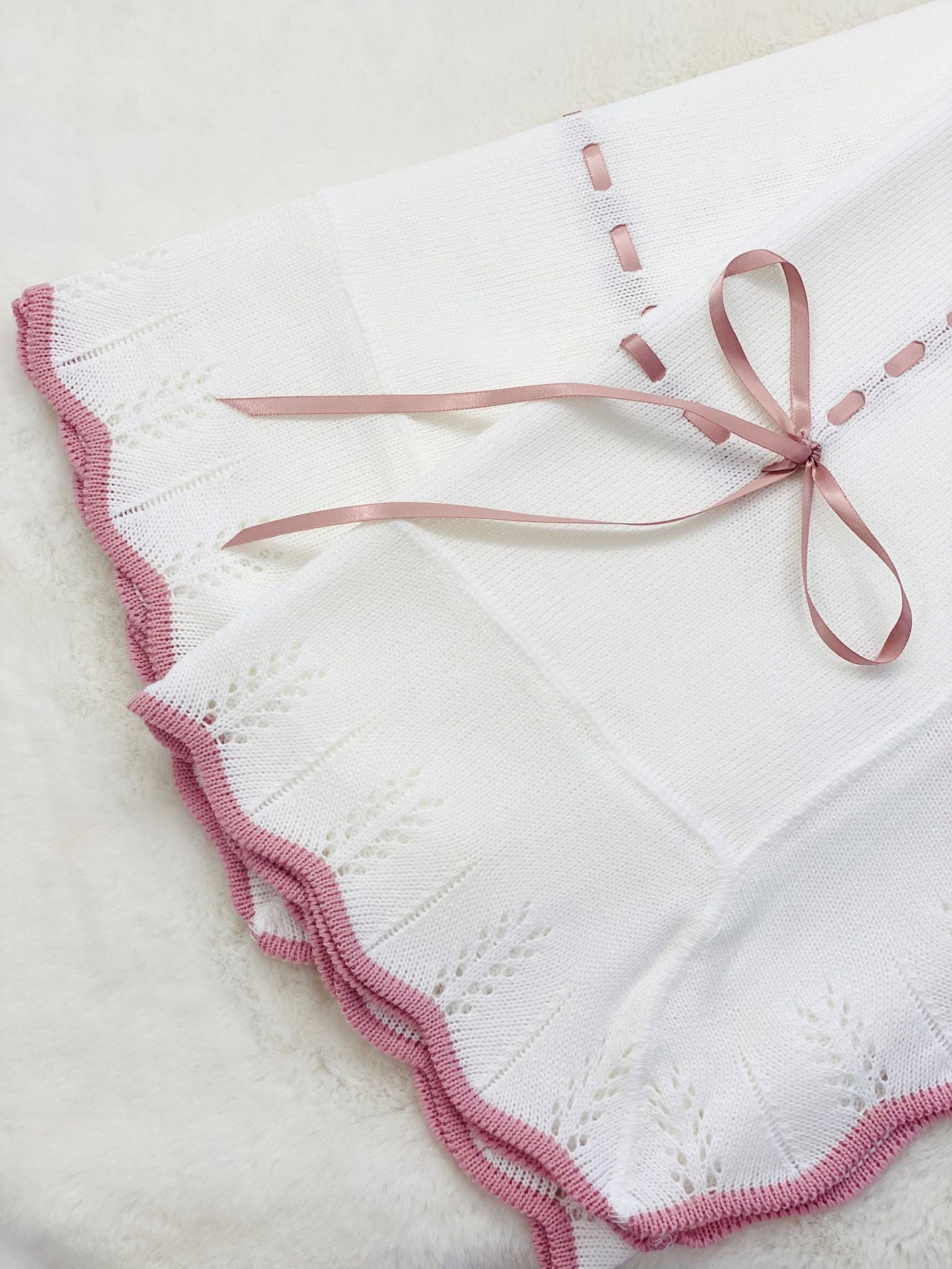Perfect Little Thing Baby's First Shawl With Dusky Pink Trim