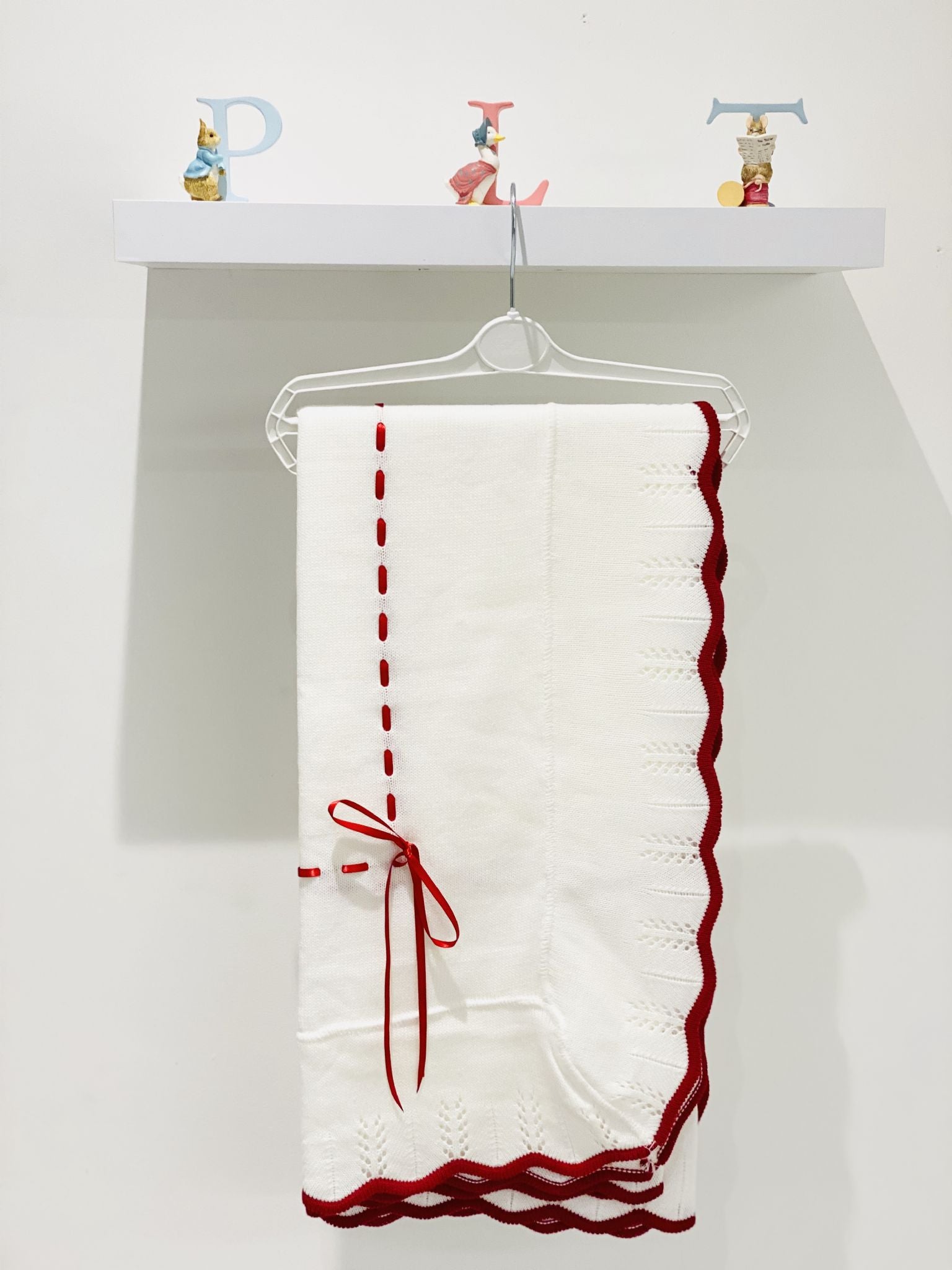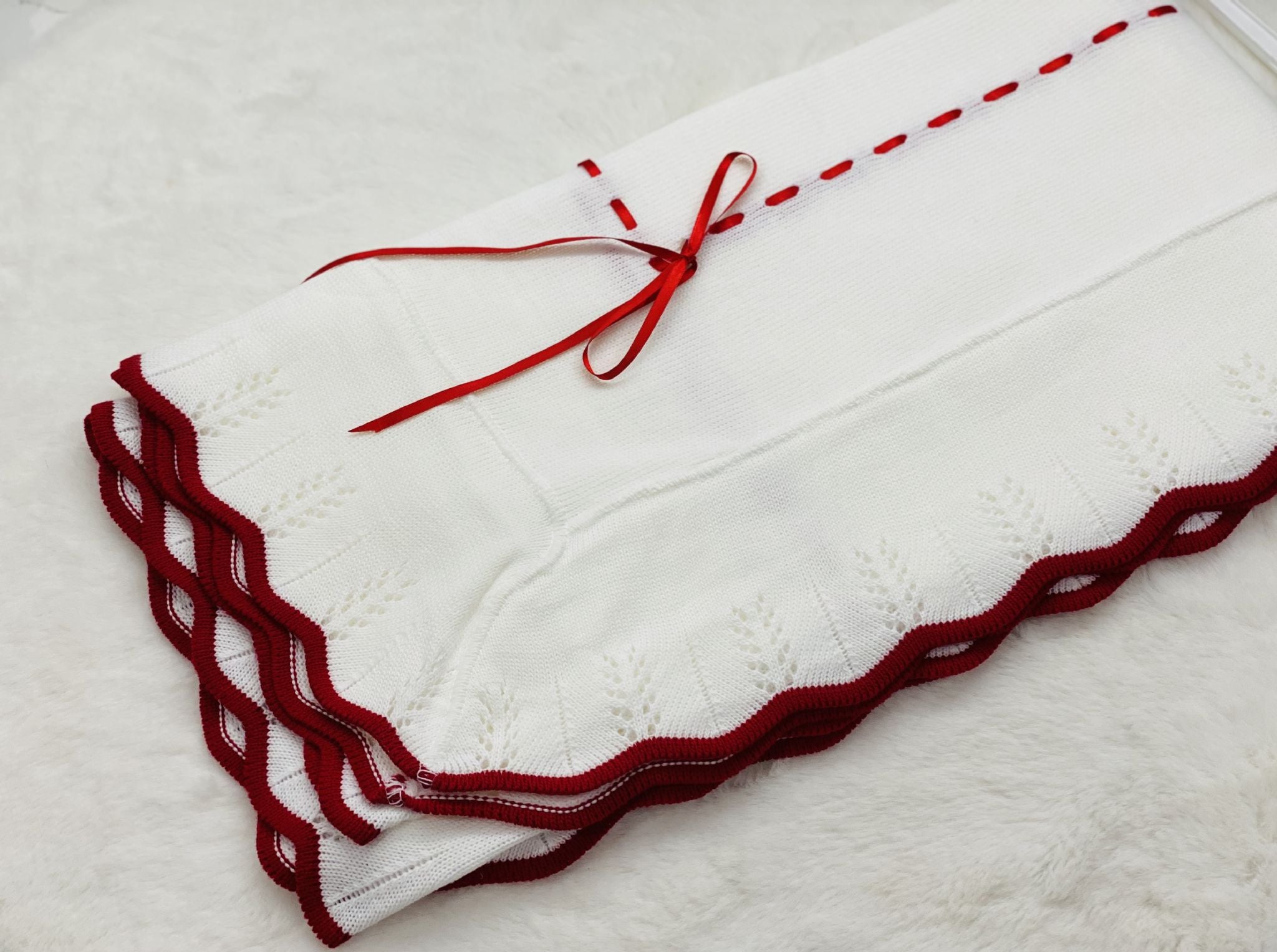 Perfect Little Thing Baby's First Shawl with Red Trim