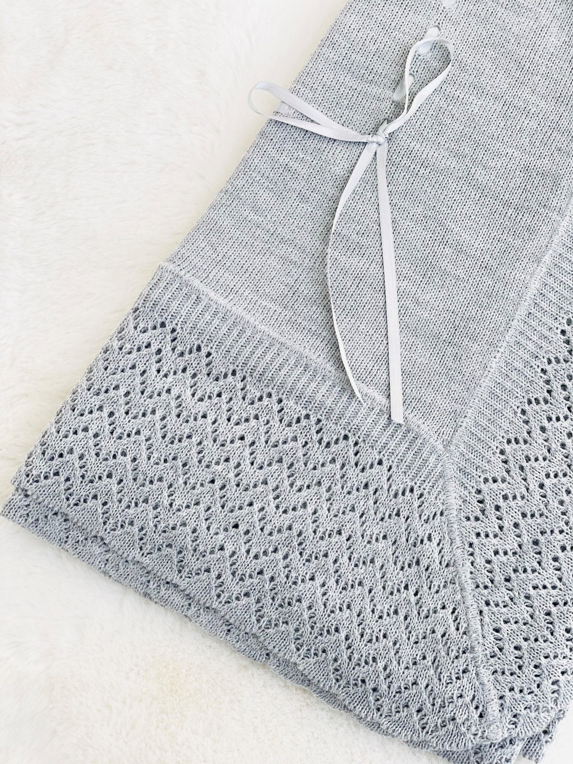 Perfect Little Thing Baby's First Shawl With Ribbon - Grey
