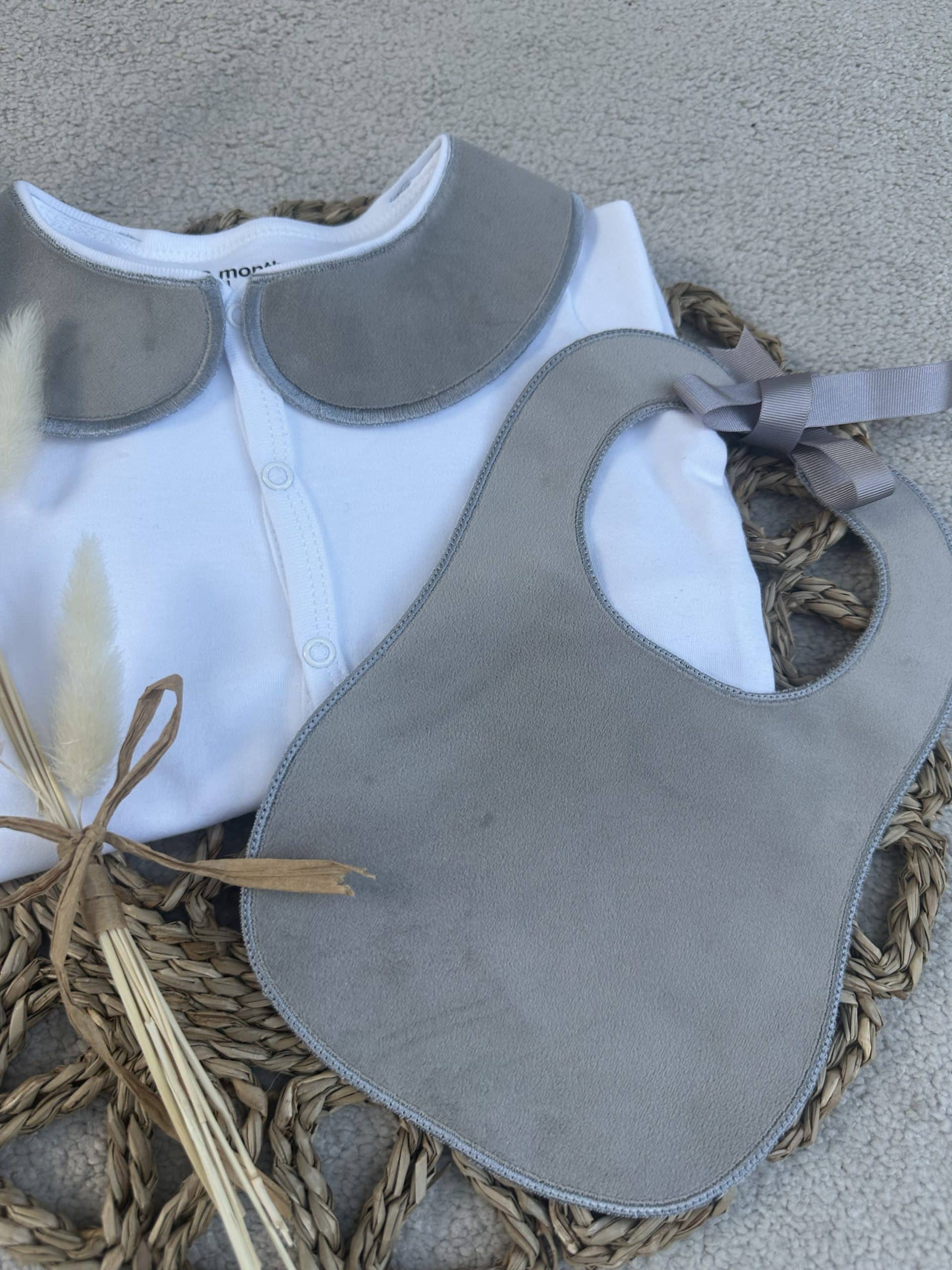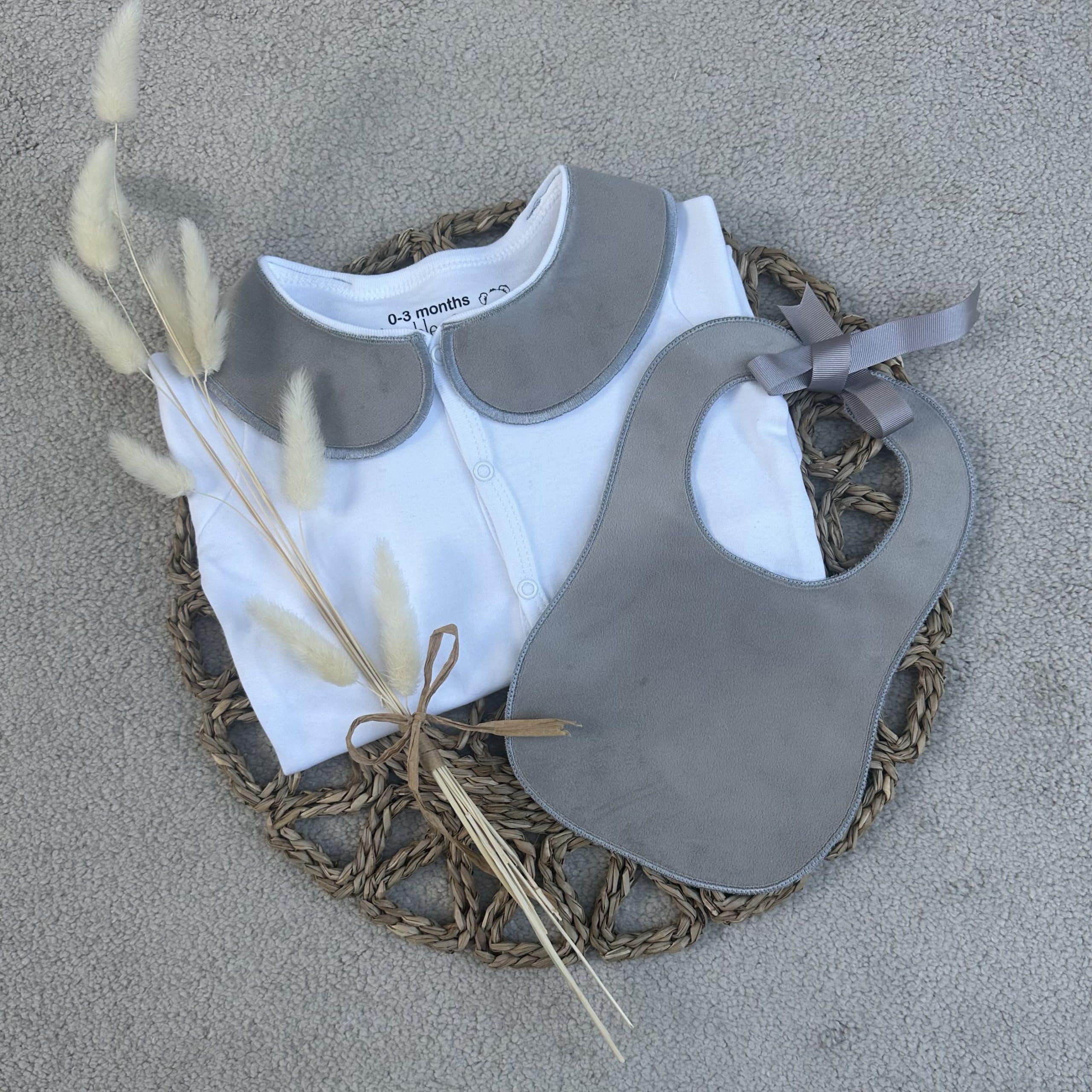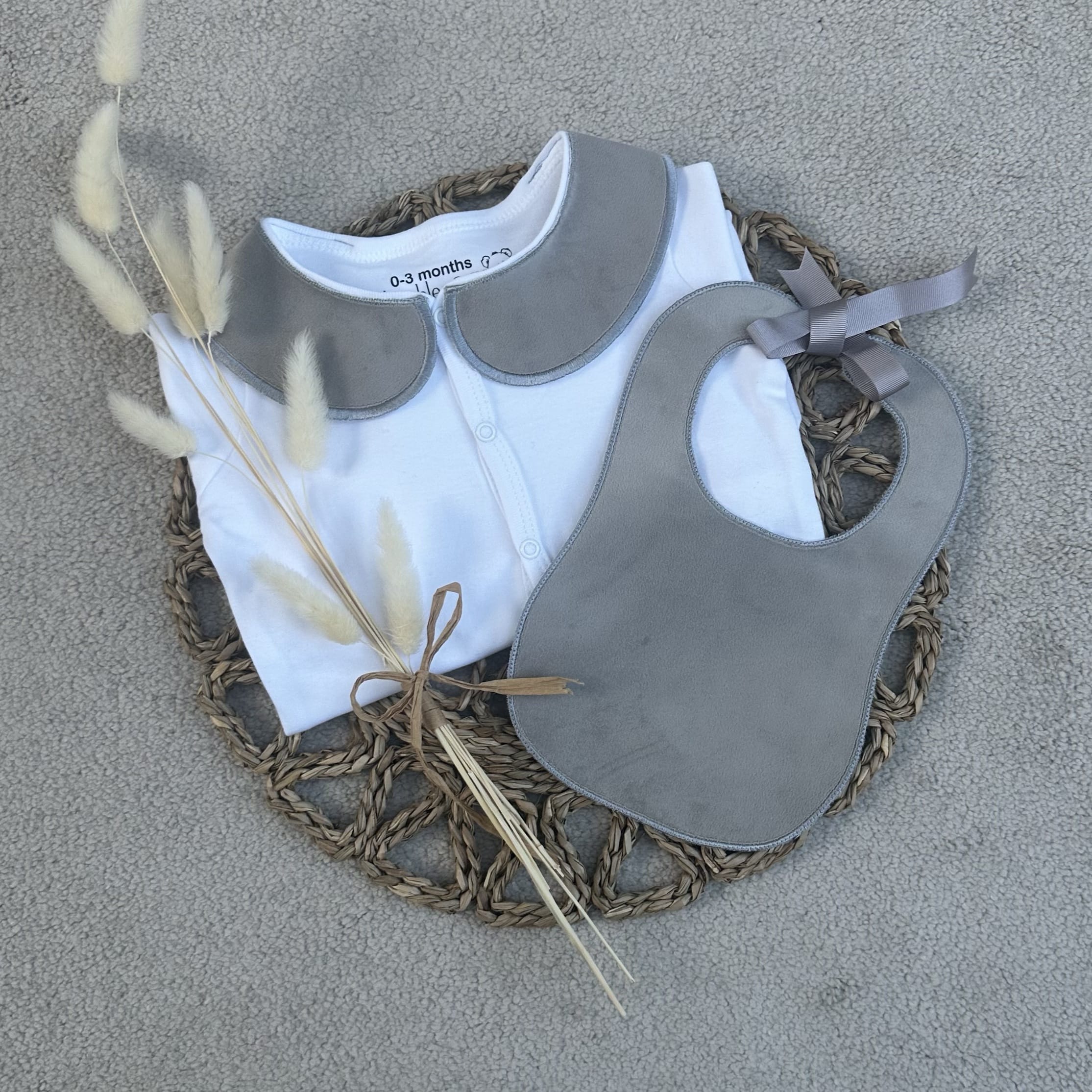 Perfect Little Thing Boys Grey Handmade Sleepsuit And Bib