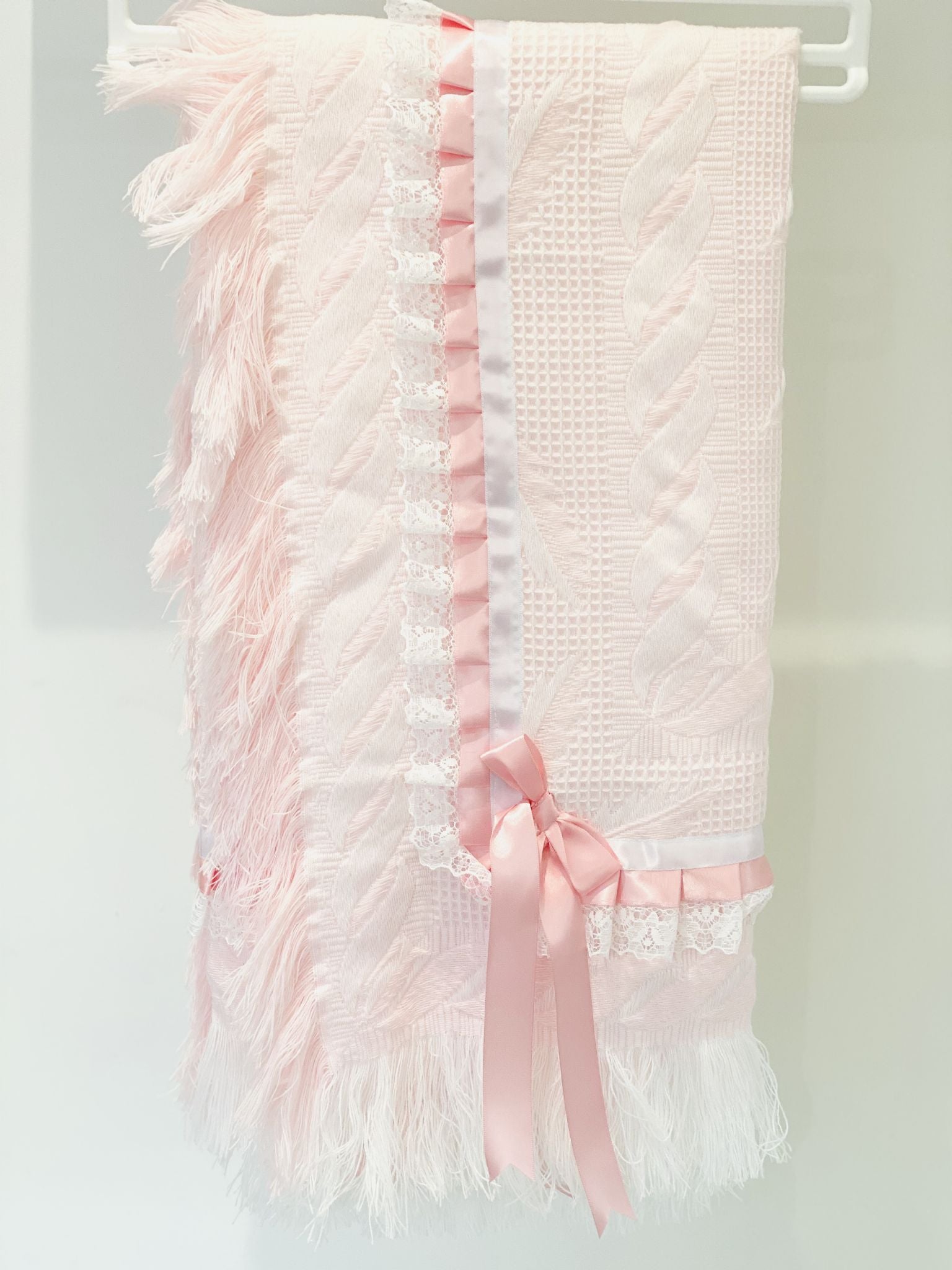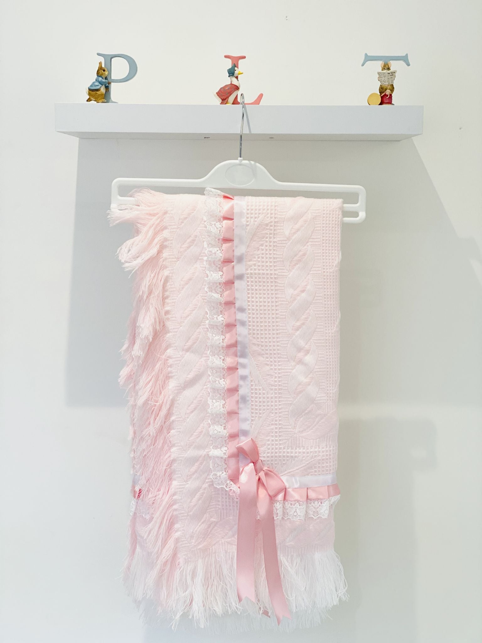 Perfect Little Thing baby shawl comes in a varied design with a lace ribbon and frill edge.