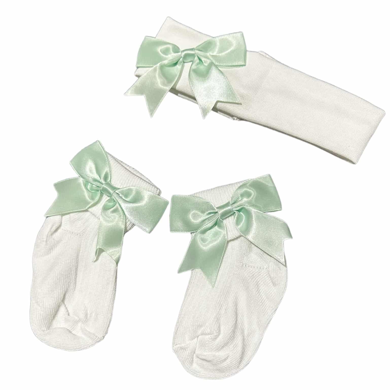 Soft Touch Girls White Ankle Socks & Headband Set - Mint