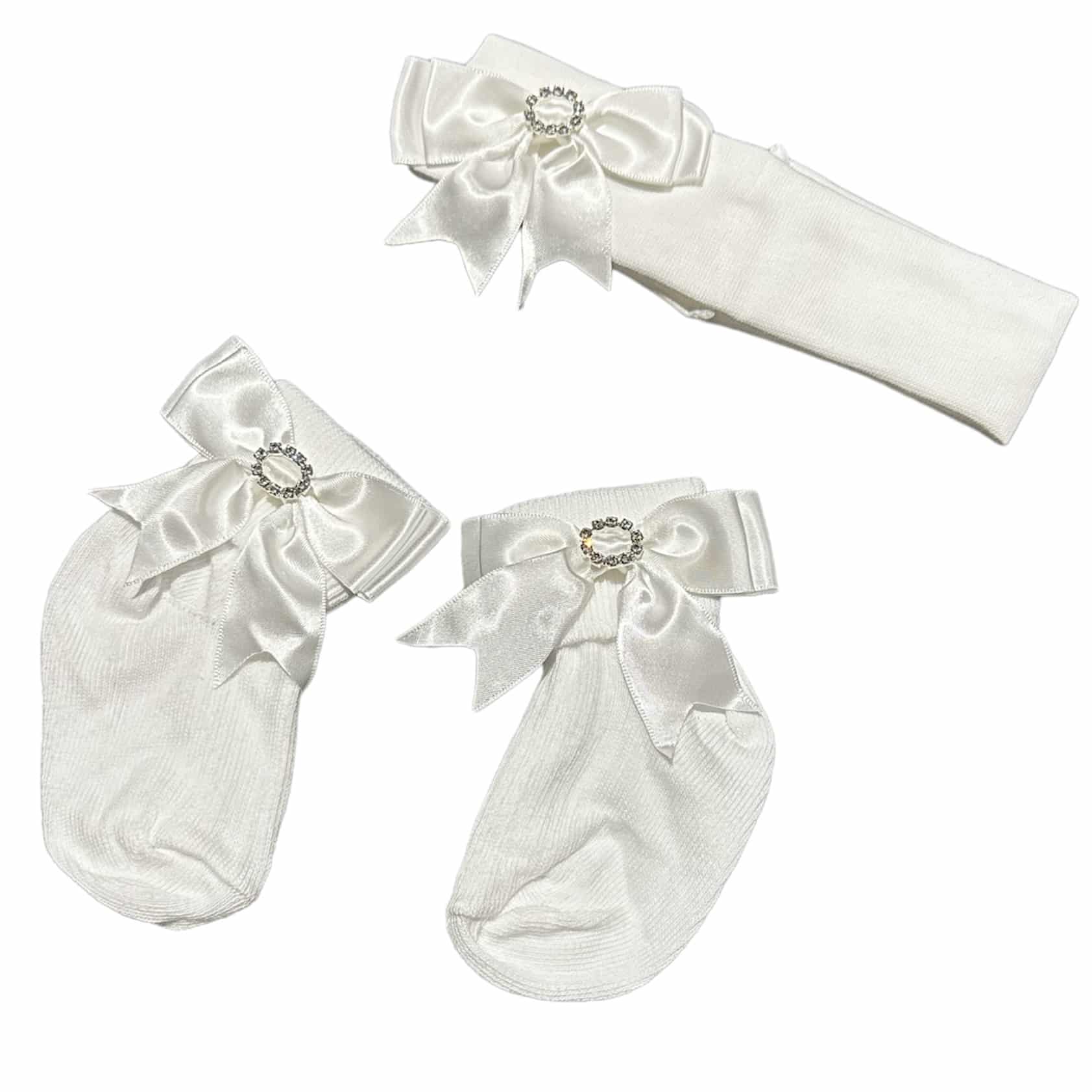 Baby Girls White Ankle Socks with a beautiful bow & Matching Headband 100% Cotton Made in the uk.