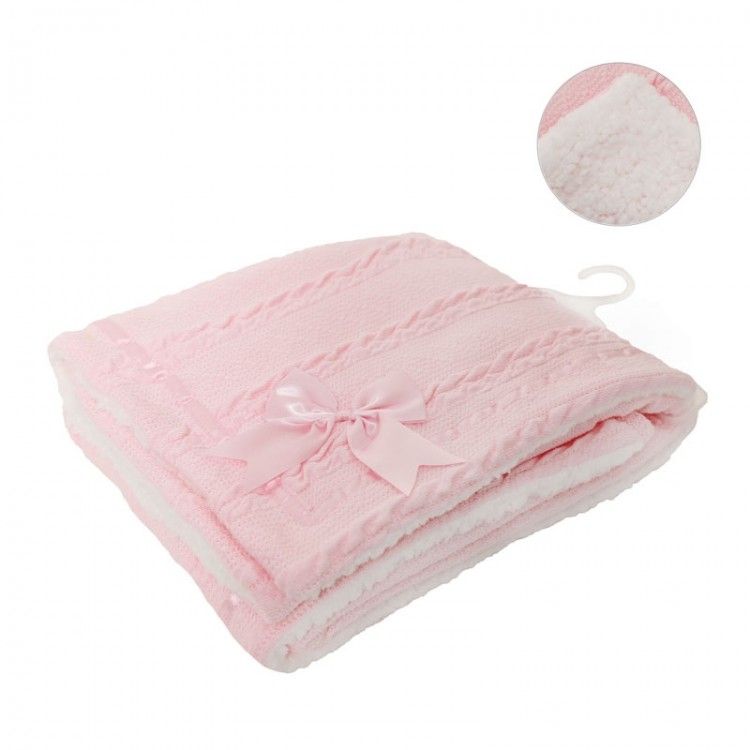 Soft Touch Chevron Cable Knit with Satin Trim Wrap - Pink