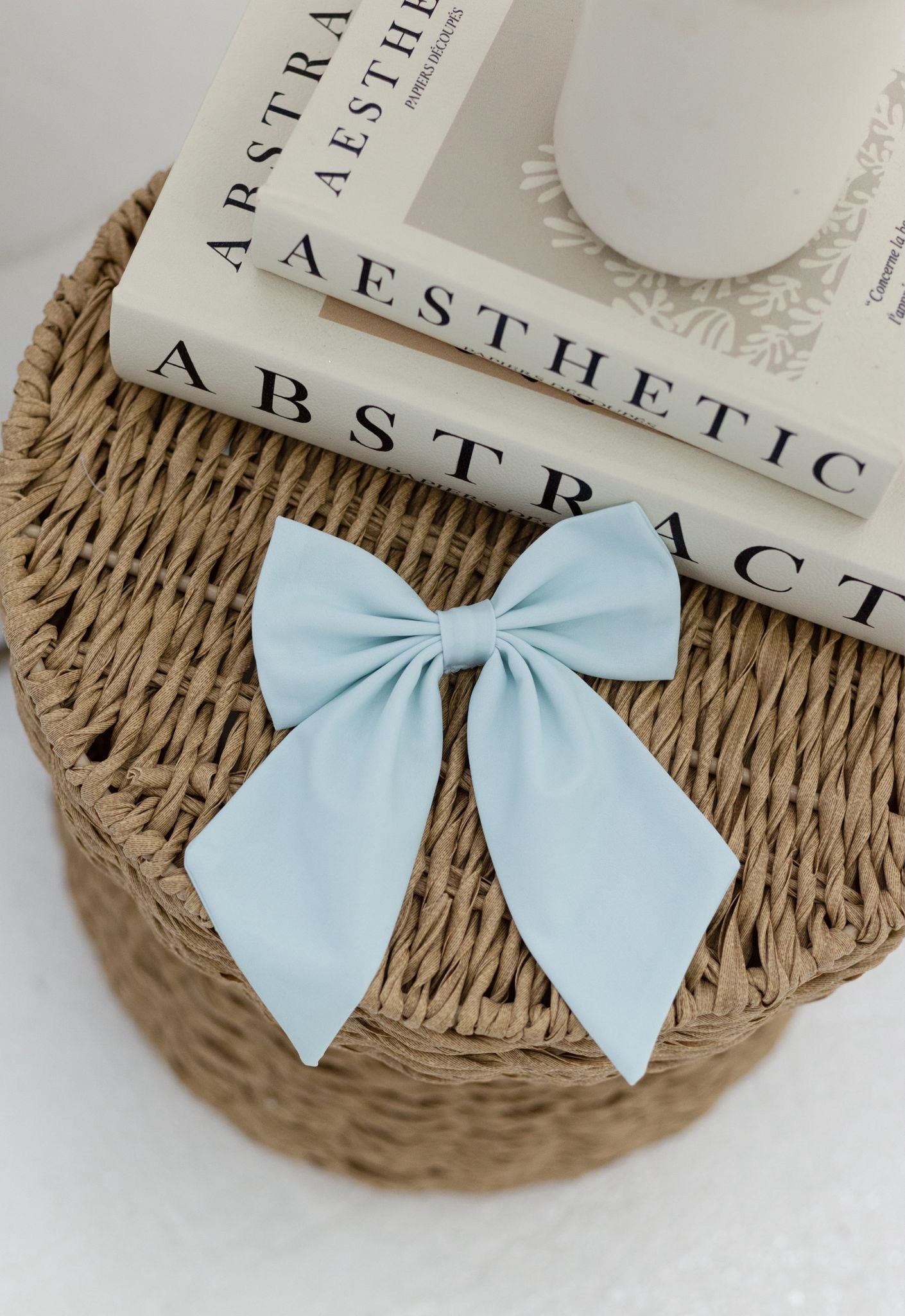 Crafted in a soft fabric that holds its shape effortlessly, this large bow drapes gracefully with long flowing tails for that timeless boutique look. Whether styled with her matching swimsuit, summer dress or occasion outfit, it instantly elevates her look while keeping things sweet and classic.