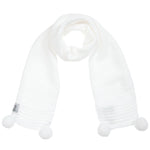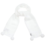 A White knitted scarf for younger boys and girls by Sätila of Sweden. This sweet scarf in made from soft, knitted acrylic and has cute pom-pom trims.