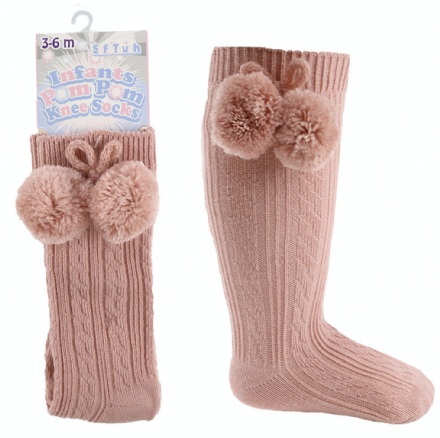 Soft Touch Rose Gold Pom Pom Knee Socks